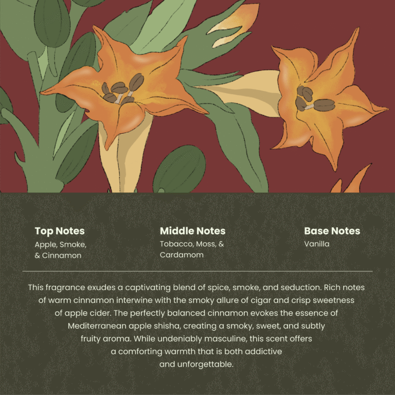 | Middle Notes | Tobacco, Moss, Vetiver |